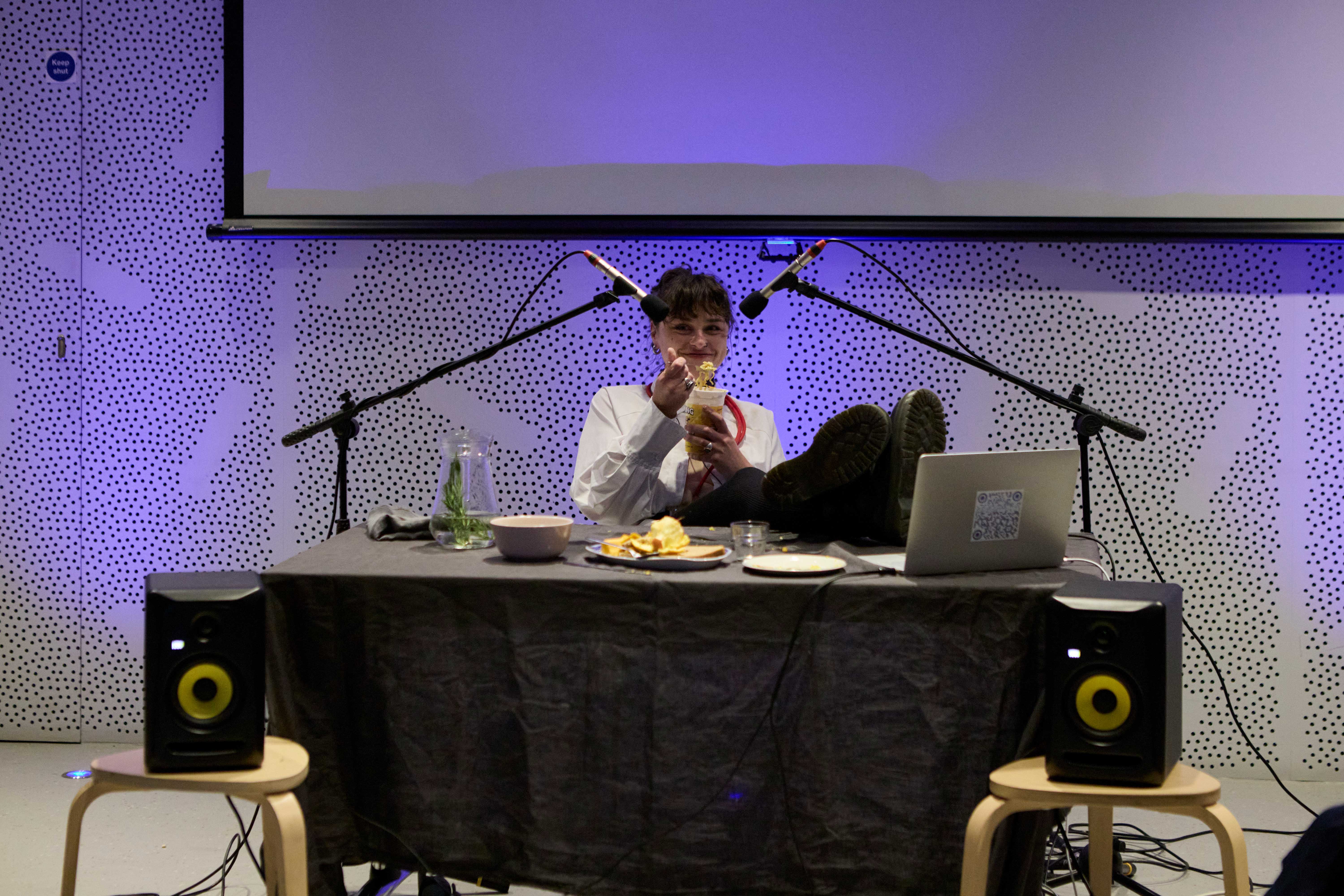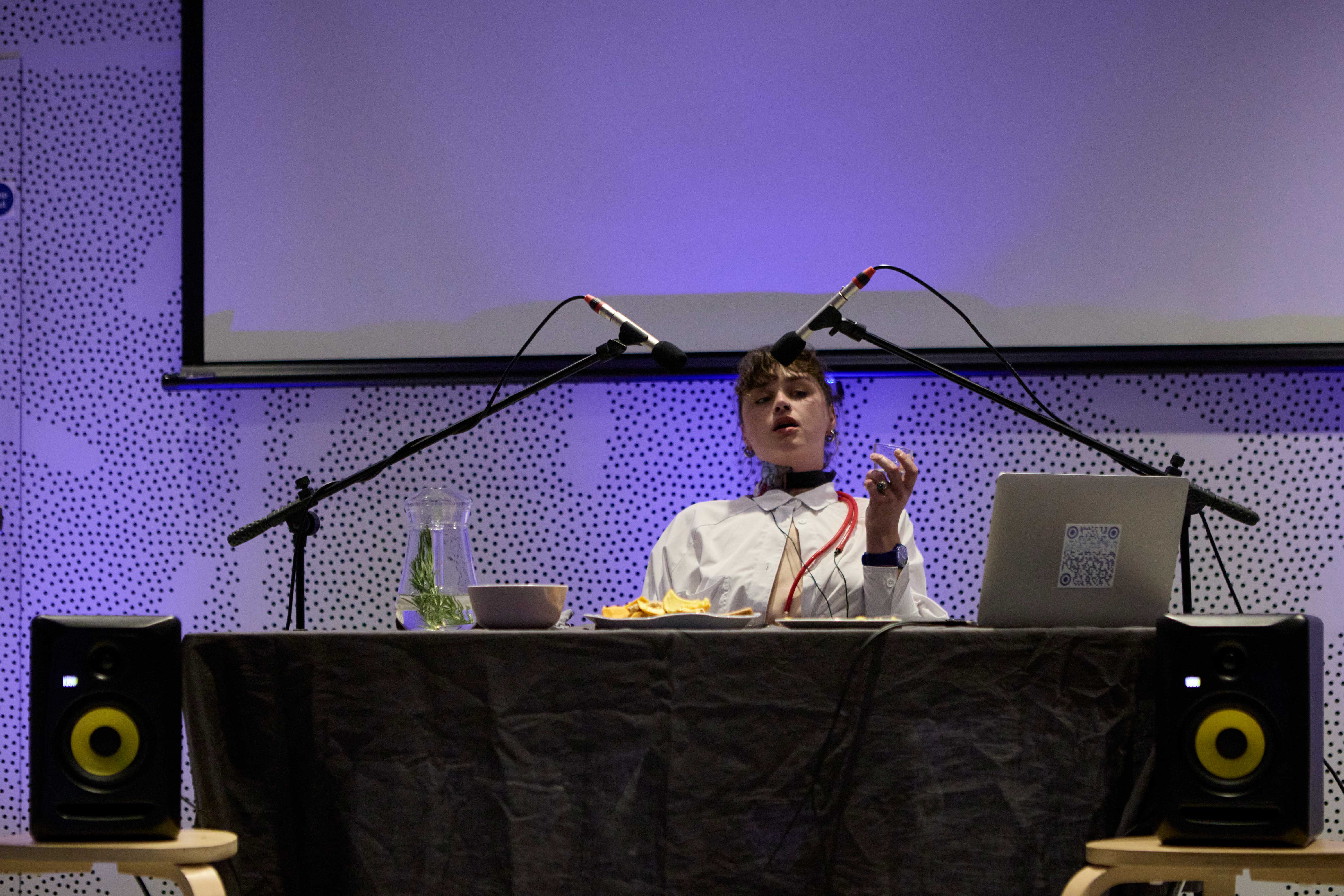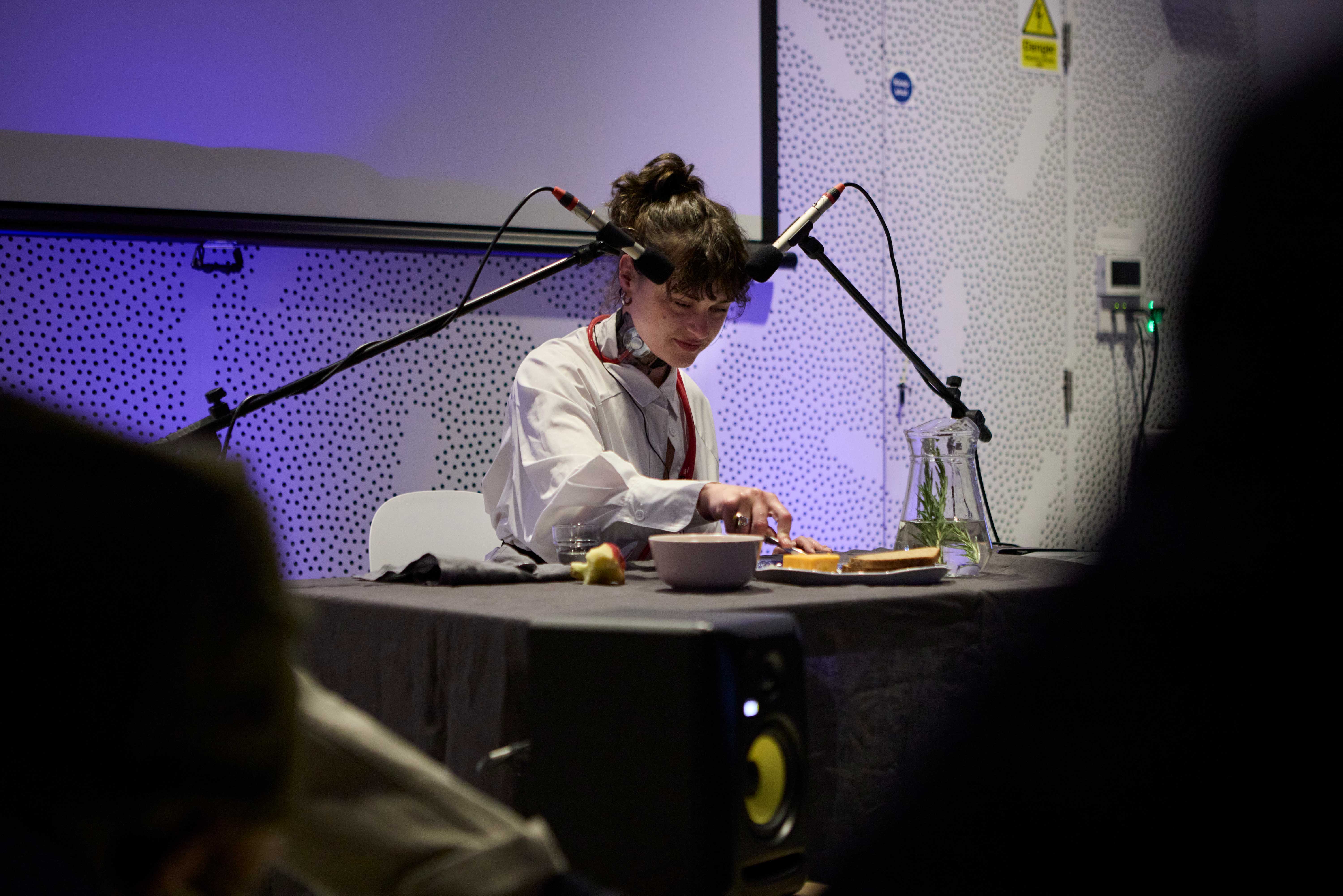 Live Performance 20 Minutes 2025‘Mastication Through the Ages [a rebellion]’; amplifys the digestive system in all its glory whilst demonstrating feeble attempts to follow the ‘rules’ of meal sharing from across the centuries. The piece aims to question - How has our attempt at distancing ourselves from the sonic evidence of our living, breathing, digesting bodies affected our relationships with ourselves and each other? Does our deep rooted shame, disgust and contempt for our bodies serve us in any way, or can we challenge this?